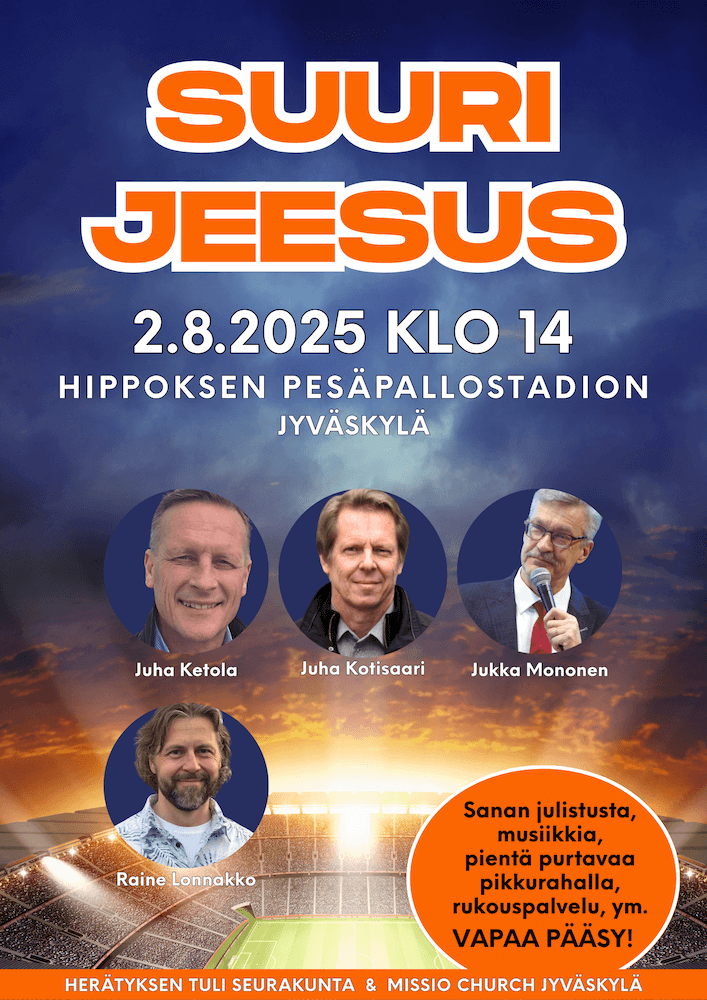 Tapahtuma Jyväskylässä Hippoksen pesäpallostadionilla. Puhumassa Juha Kotisaari, Juha Ketola sekä Jukka Mononen. Ylistyksenjohdossa Raine Lonnakko. Karitsan Häät -yhdistyksen esittelypiste.